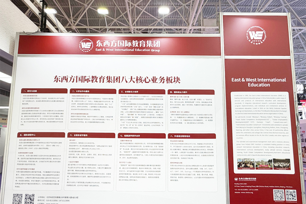 作为国内较早深耕国际教育服务领域的教育机构之一,东西方国际教育集团此次参展,重点围绕“全链条服务、全周期培养”的核心理念,系统展示覆盖学生成长全路径的综合解决方案。通过对国际教育研究、人才培养、课程体系、升学服务及就业能力提升等关键环节的整体呈现,进一步强化了其“平台型国际教育服务机构”的定位。