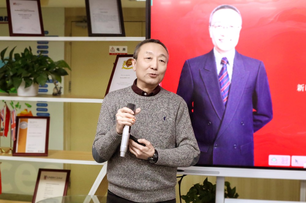 抽奖环节的喜悦氛围尚未散去,温馨的祝福便跨越了遥远的距离。东西方国际教育集团副总裁,上海威久教育科技中心董事长、总经理王强先生携上海中心管理团队,通过视频方式为集团全体同仁送上了诚挚的新春寄语。王强先生在致辞中表示,过去一年,上海中心保持活力、稳步向前,这份成绩得益于总部的关心指导、总部各部门的鼎力支持,更凝聚着每一位上海同仁的辛勤付出。他衷心祝愿大家身体健康、阖家幸福,并祝愿集团在2026年如万马奔腾,势不可挡,再创辉煌业绩。