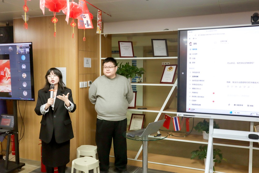 为彰显集团对前沿技术的关注与探索,倡导创新理念、鼓励全员与时俱进,胜任力项目中心为大家带来了一场以AI应用为主题的特色辩论赛。辩论现场,华青未来教学主任潘然然及招生主任张宇浩与AI展开激烈对决,围绕“全球胜任力项目对高校国际化人才培养的作用”这一辩题各抒己见。两位沉着应对AI的精准回应,展现出扎实的专业素养和面对AI技术的从容与思辨力。精彩的辩论赢得现场阵阵掌声。