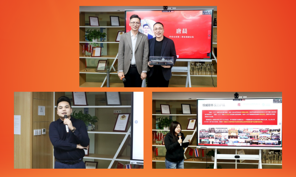 辩论赛结束后,威久留学副总经理崔天阳、国旅出入境产品专员王萱、华青未来第二事业部副总监唐晨先后上台发言。三位分别结合自身工作实际,分享了各自的工作成果与感悟,表达了对集团发展的信心以及立足岗位、奋勇争先的决心。