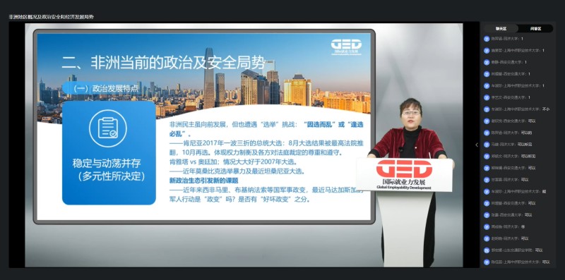 由中国社科院西亚非洲研究所/中国非洲研究院研究员、博士生导师贺文萍教授领衔授课。作为享受国务院政府特殊津贴的资深专家,贺教授以丰富的区域研究经验为依托,系统梳理非洲主要区域的政治格局、经济特征与文化脉络,结合热点国际事件解析区域合作机遇与风险。课程为有志于从事跨国事务、国际组织工作的学生提供了关键的区域认知基础,帮助学生精准把握不同国家的职场环境与合作逻辑。