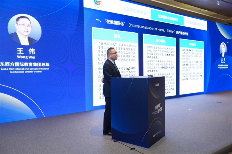 今日,第26届中国国际教育年会于国家会议中心隆重开幕,集团总裁王伟出席“教育强国视域下国际化人才培养模式创新与国际合作高质量发展论坛”,并发表了题为“出国留学与在地国际化协同发展的思路与建议”的主旨演讲,向与会者详细介绍了东西方国际教育集团的在地国际化实践。