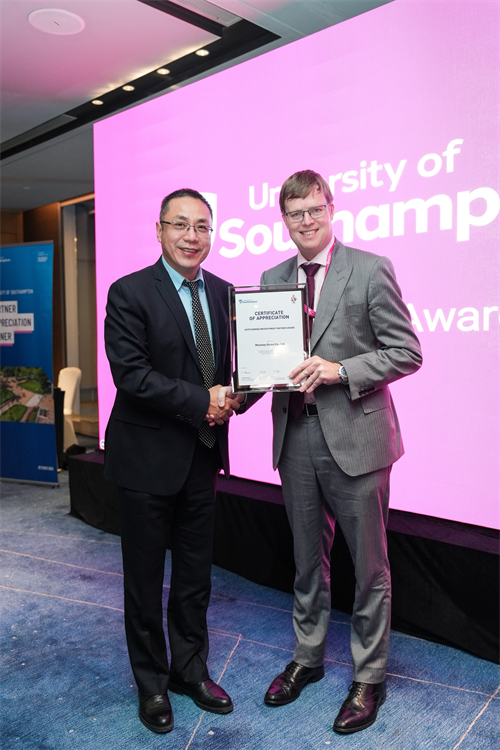 10月24日晚,英国南安普顿大学在北京举办晚宴。东西方国际教育集团总裁王伟先生受邀出席,与南安普顿大学多位重要代表展开深入交流,为双方教育合作注入新活力,晚宴现场还传来重磅喜讯 —— 东西方获颁南安普顿大学 “卓越招生合作方奖项”(Outstanding Recruitment Partner Award),王伟总裁上台领奖。